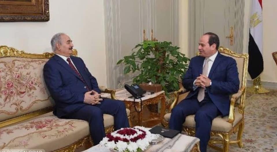 بحث الرئيس المصري عبد الفتاح السيسي، الاثنين في القاهرة، مع قائد الجيش الليبي خليفة حفتر، الأوضاع الإقليمية، ولا سيما التطورات في ليبيا والسودان.