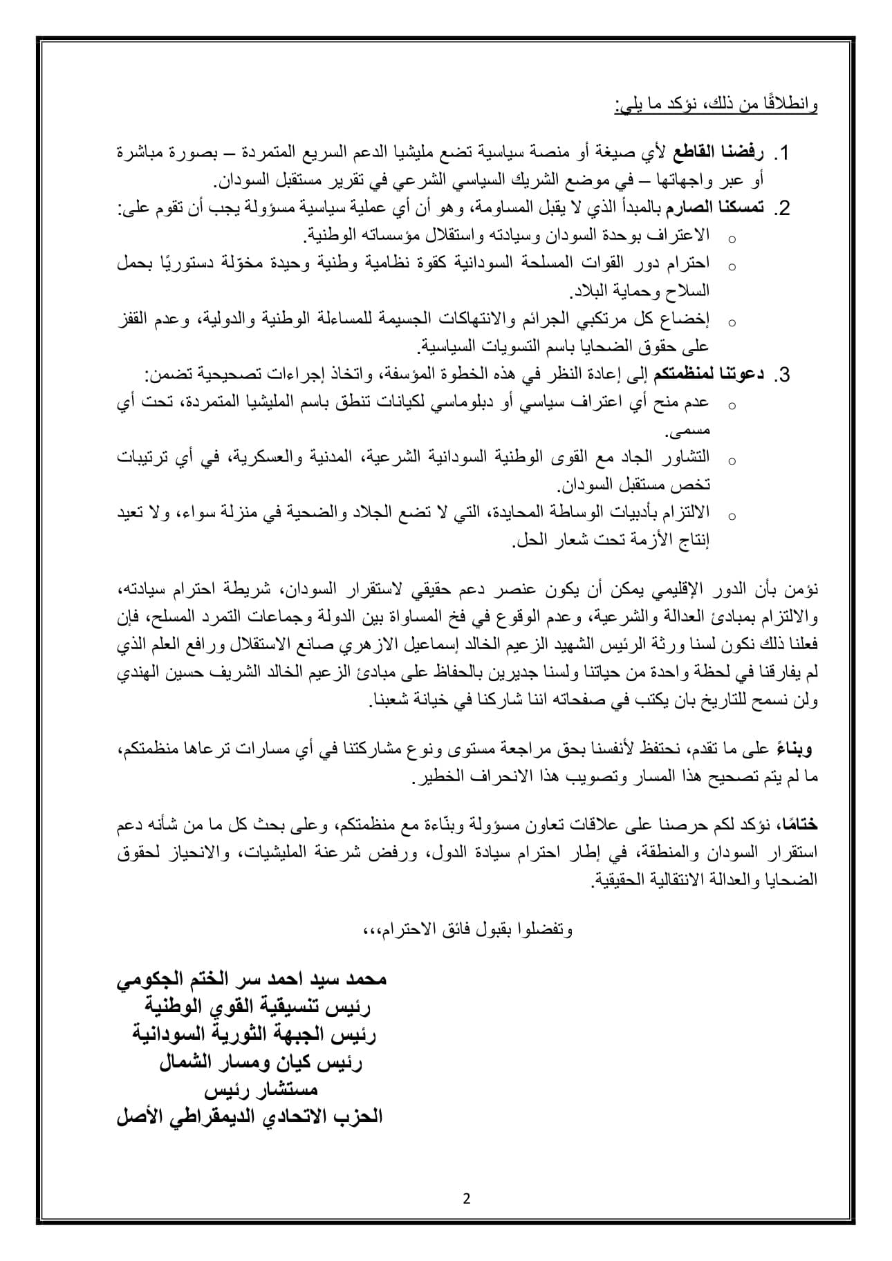الإيقاد يأجل إجتماع لأجل غير مسمي بعد إعتراض تنسيقية القوي الوطنية علي مجرد دعوة تأسيس وذلك بخطاب للإيقاد و مفوضية الاتحاد الإفريقي
