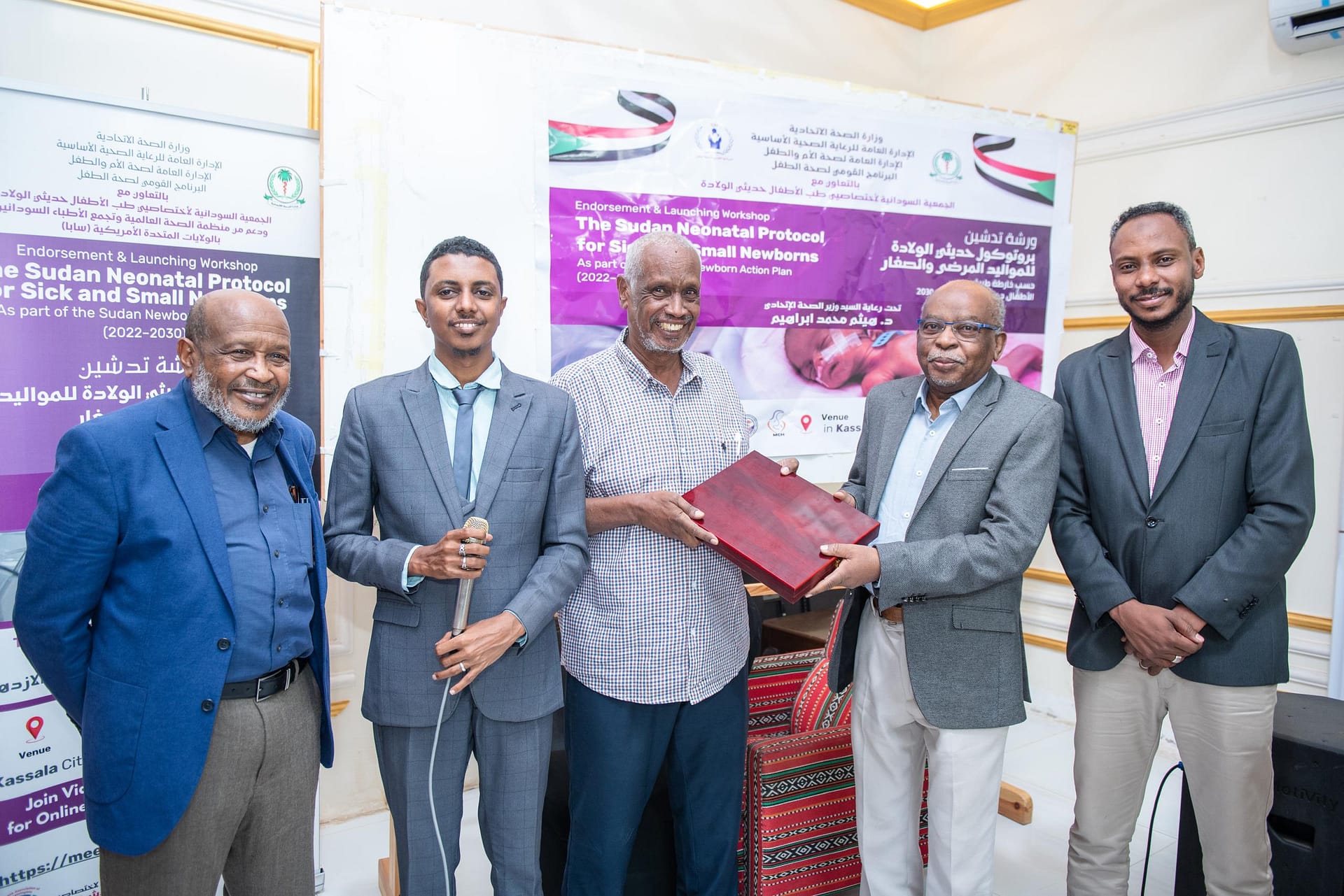 دشنت وزارة الصحة الاتحادية ممثلة في البرنامج القومي لصحة الطفل، بالتعاون مع الجمعية السودانية لاختصاصي طب الأطفال حديثي الولادة، اليوم بقاعة الريح الطريفي بمدينة كسلا، البروتكول القومي لحديثي الولادة للمواليد المرضى والصغار، والذي جاء وفقاً لخارطة طريق الأطفال حديثي الولادة 2022-2030م،بمشاركة الجمعيات التخصصية والمنظمات الدولية.