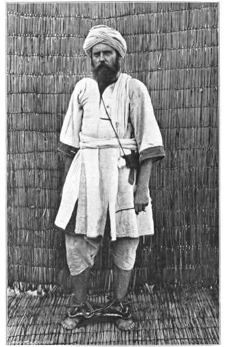 ذكرت أنني أسلمت نفسي ومن معي من الجنود في منتصف النهار فقبضوا علي و أوثقوني كتافاً و ساقوني إلى أمين بيت المال يحيط بي نحو مائتي نفر من الدراويش شاهرين سيوفهم وكلهم يصيحون بي و يقولون ياكافر ياعدو الله فالفيته بمنزل أبي بكر الجاركوك أحد أعيان المدينة ووجدت المنزل مملوء بالنساء وهو مشتغل بفرزهن ولما أُوقفت بين يديه كان مشتغلاً بالنظر إلى فتاة فاتنة وهي مجرده من ملابسها و بيدها خرقة تستر بها عورتها وهو يقلبها يمنى و يسرى و الدموع تتساقط من جفونها و هي تقول “رضينا بقضائك ياالله”.