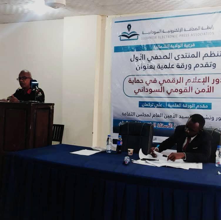 وقدّم الأستاذ علي تركمان، رئيس رابطة الصحافة الإلكترونية السودانية فرعية الولاية الشمالية، ورقة علمية محكّمة بإشراف البروفيسور سيف الدين حسن العوض، عميد كلية الإعلام السابق بالجامعة الإسلامية، بعنوان: