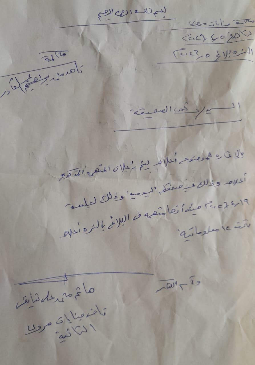 ناهد محمد عبدالقادر عبد النبي انتي مكلفة بحضور جلسة 19/ 4/ 2026 لنظر البلاغ الموجه إليكِ من وسام احمد الحاج بلاغ معلوماتيه . فإن لم تحضري في هذا الميعاد أو تعيني لكِ وكيلاً أو تبدي عزراً شرعياً مقبولاً سمع البلاغ وحكم فيه في غيبتك .