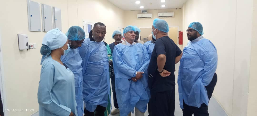 استقبله الدكتور عوض الكامل، المدير العام للمستشفى، وعدد من العاملين، إلى جانب الدكتور فيصل أحمد النور المدير القطري لمنظمة “سابا”. ورافقه في الزيارة كل من الدكتور أحمد البشير مدير الإدارة العامة للطب العلاجي، والدكتور معز حسن بخيت مدير إدارة الجودة والتطوير الإداري، والأستاذ عبدالعظيم عيدروس المدير التنفيذي لمكتب المدير العام، والدكتورة هاجر إدريس مدير مكافحة العدوى، والدكتور عبدالواحد علي مدير إدارة المستشفيات.