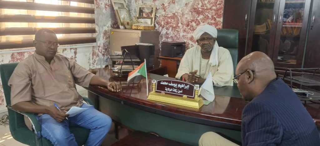مواصلة للعمل المشترك بين التأمين الصحي وديوان الزكاة استقبل ابراهيم يوسف امين ديوان الزكاة بولاية سنار بمكتبه بسنجة الدكتور أحمد علي الحسين مدير الصندوق القومي للتأمين الصحي فرع الولاية بحضور مديري الادارات للجانبين.