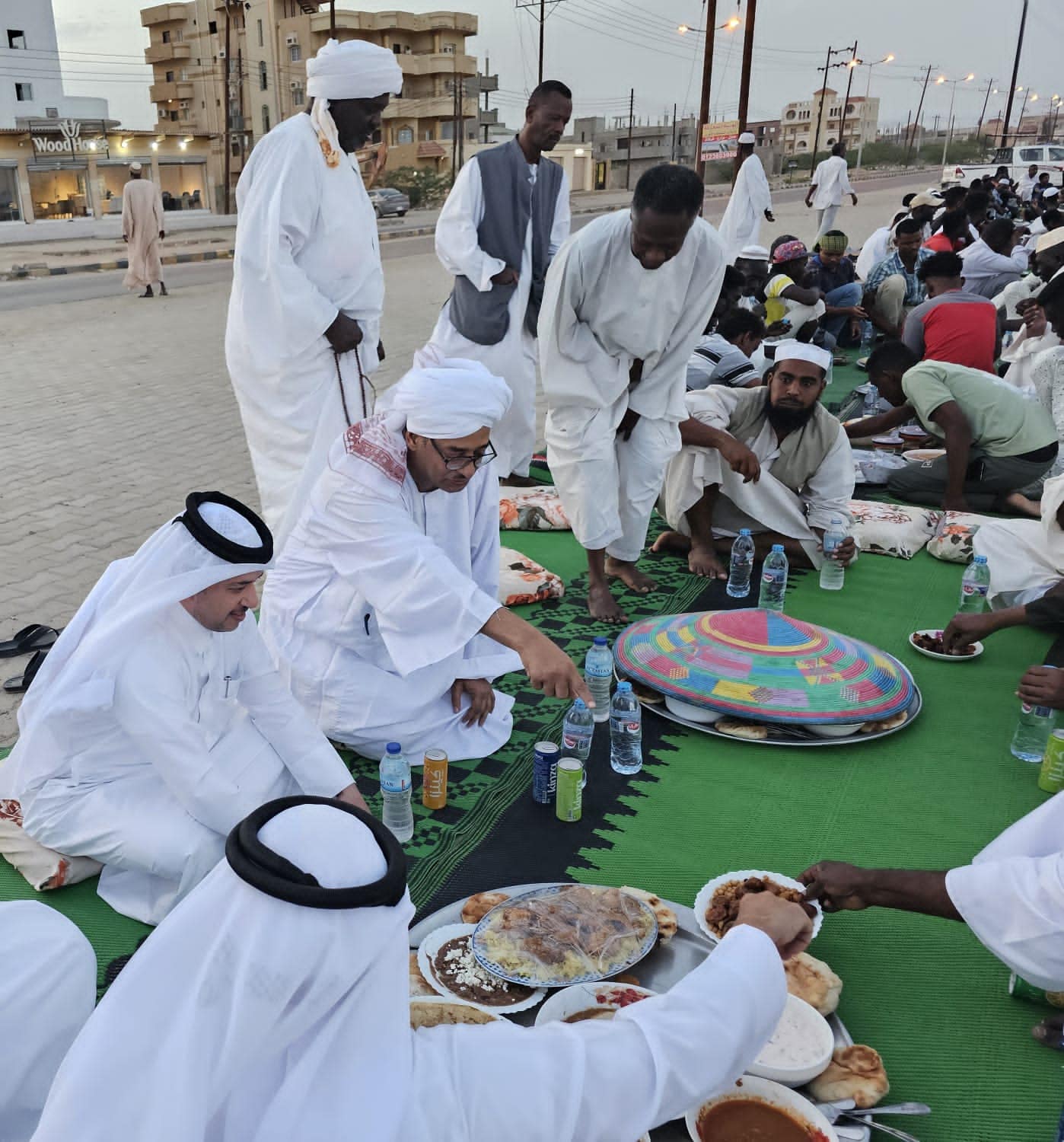 في بادرة طيبة تؤكد عمق العلاقات الروابط الانسانية بين الشعبين القطري والسوداني، شارك سعادة السيد محمد ابراهيم السادة السفير القطري لدى السودان بمعية السيد عبد الله بن راشد المهندي قنصل السفارة والعميد عبدالله مهنا الرمل الملحق العسكري بالسفارة احتفاء مواطني حي المطار في مدينة بورتسودان بشهر رمضان حيث تناول طعام الافطار الجماعي على برش الافطار الذي ينظمه السكان امام مسجد النور بالحي بحضور فريق عمل مكتب الهلال الأحمر القطري في السودان