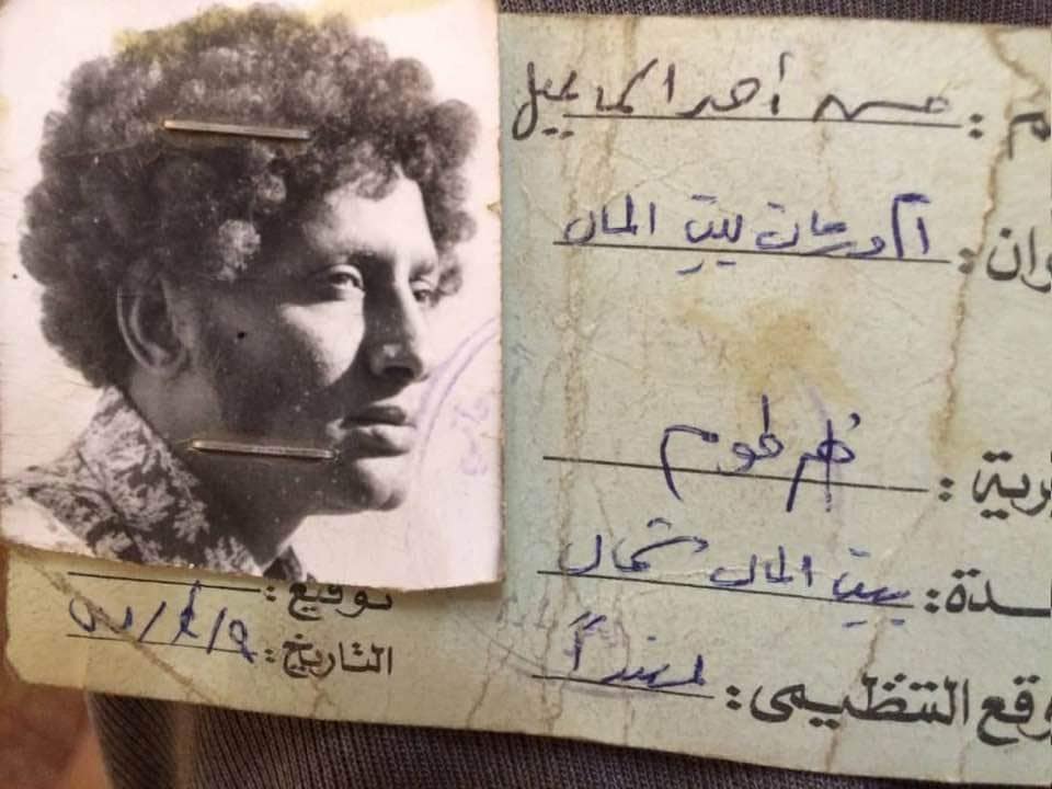 بعد هدوء الأحوال فكرت انه لابد لي ، متى واجهت مثل موقفي يومها، ان تكون لي بطاقة اثبات هوية تنفر مني ما وسعها ووسع الموقف. فتحدثت إلى نور الهدي ومحجوب شريف عن خاطرتي تلك. ولم انتظر لأكثر من ايام وجاءني نور الهدى بالبطاقة المصاحبة. وتجدني في الصورة بباروكة جاءتني من امريكا لغرض التخفي
