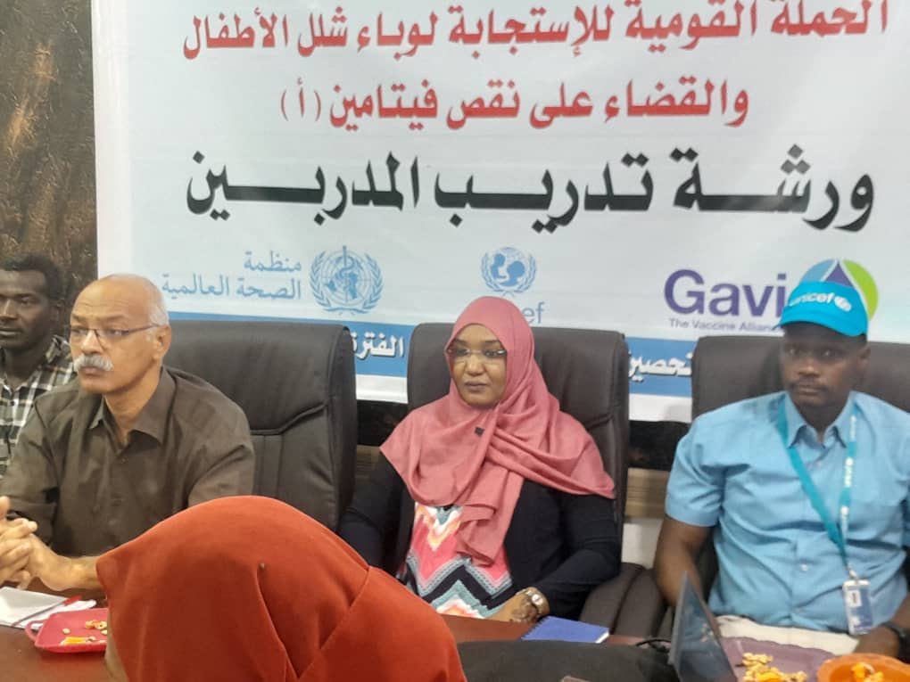 بدأت صباح اليوم بقاعة الاجتماعات بادارة برنامج التحصين الموسع ببورتسودان ورشة تدريب المدربين للحملة القومية للاستجابة لوباء شلل الأطفال والقضاء علي نقفيتامين(ا) التي تنظمها إدارة التحصين بالإدارة العامة للرعاية الصحية الأساسية بقطاع الصحة بالبحر الأحمر بالتعاون مع منظمات الصحة العالمية واليونيسيف وقافي بإشراف التحصين القومي بوزارة الصحة الاتحادية وتستمر الورشة يومي 16~17 أبريل التي تستهدف ضباط التحصين والتغذية وتعزيز الصحة