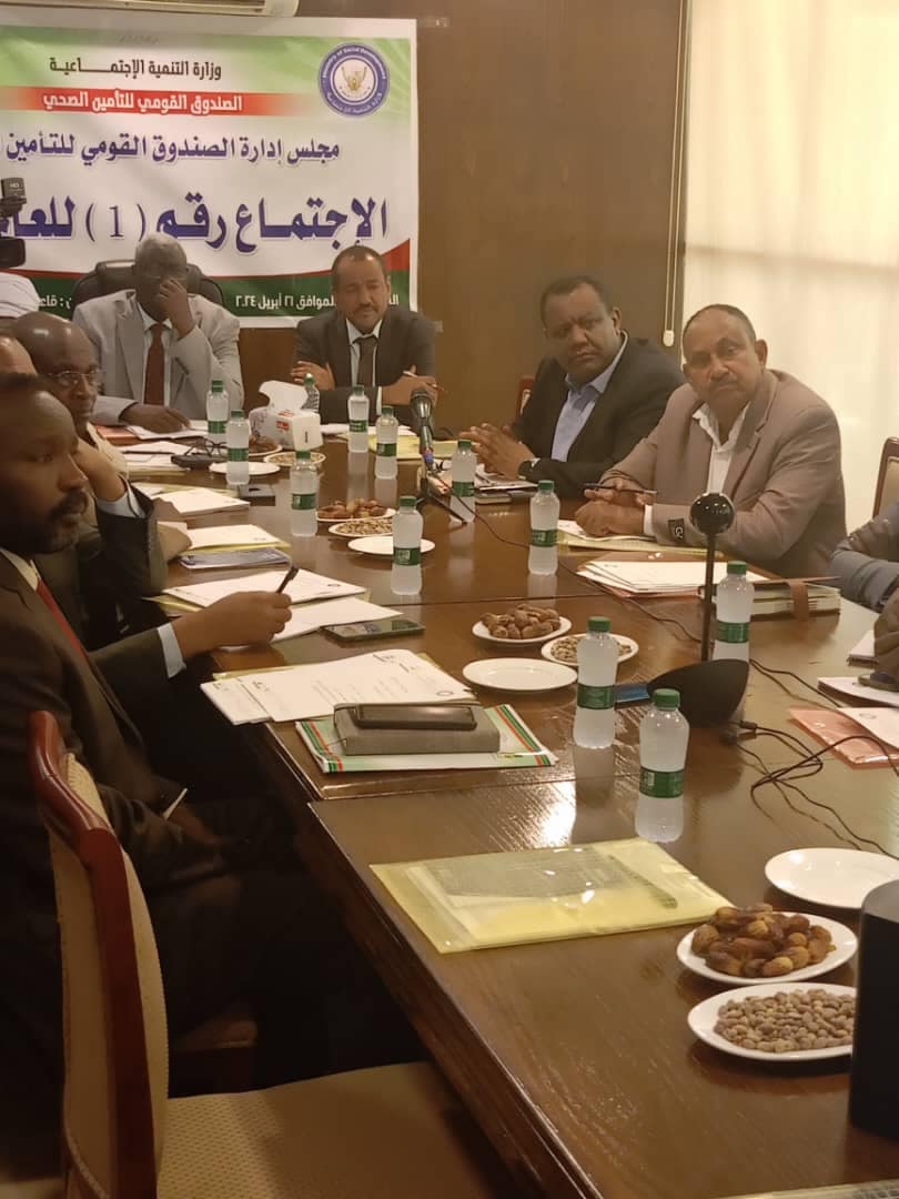 راس د.آحمد آدم بخيت وزير التنميه الاجتماعيه الاتحادي رئيس مجلس إدارة الصندوق القومي للتأمين الصحي إجتماع مجلس الإداره الأول للعام ٢٠٢٤م بقاعة برج الضمان الاجتماعي والذي ناقش واجاز خطة حزمة الخدمات الإضافيه للعام ٢٠٢٤م وموازنة حزمة الخدمات الاضافيه للعام ٢٠٢٤م اضافة الى حزمة المنافع الطبيه وضوابط تقديمها وصولا لإنجاز متطلبات مرحلة الطوارئ والتعافي