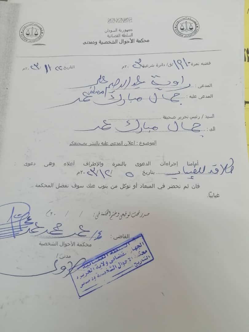 الموضوع /إعلان المدعي عليه بالنشر بصحيفتكم