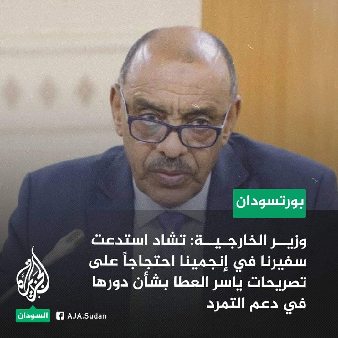وزير الخارجية المكلف علي الصادق: تشاد استدعت سفيرنا في إنجمينا احتجاجاً على تصريحات ياسر العطا بشأن دورها في دعم التمرد وطالبت الحكومة السودانية بالاعتذار خلال ثلاثة أيام لكننا لن نعتذر
