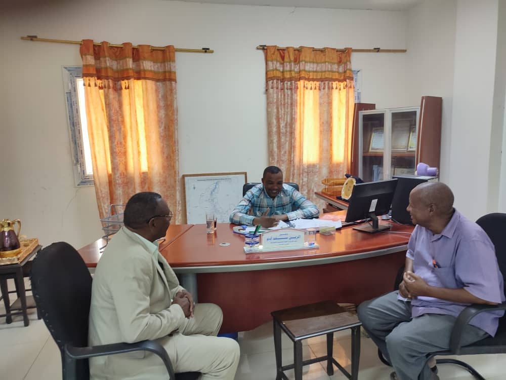 التقي الدكتور الزين سعد ادم المدير العام الوزير المكلف لوزارة الصحة والتنمية الاجتماعية بولاية النيل الابيض بمكتبة بالاستاذ حماد عبدالله مدير عام ديوان شؤون الحكم المحلي بالولاية بحضور الاستاذ عبدالباقي فرح الدور مدير شؤون ديوان الخدمة بالولاية والاستاذ طارق يحي