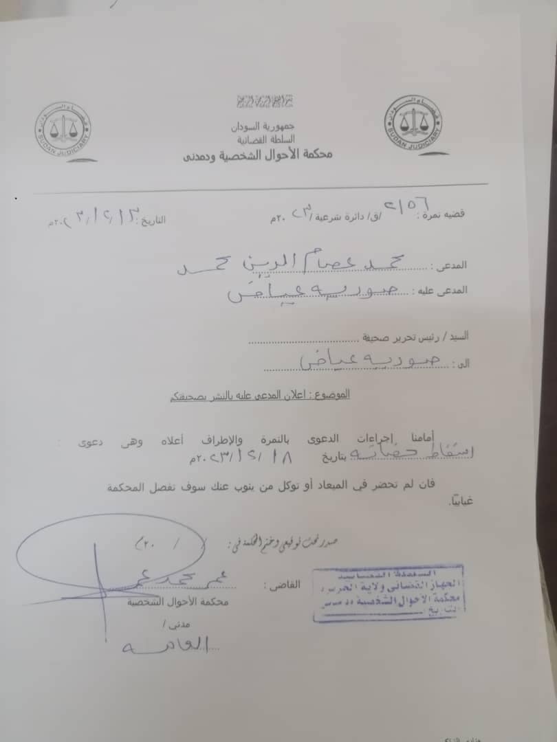 الموضوع /إعلان المدعي عليه بالنشر بصحيفتكم