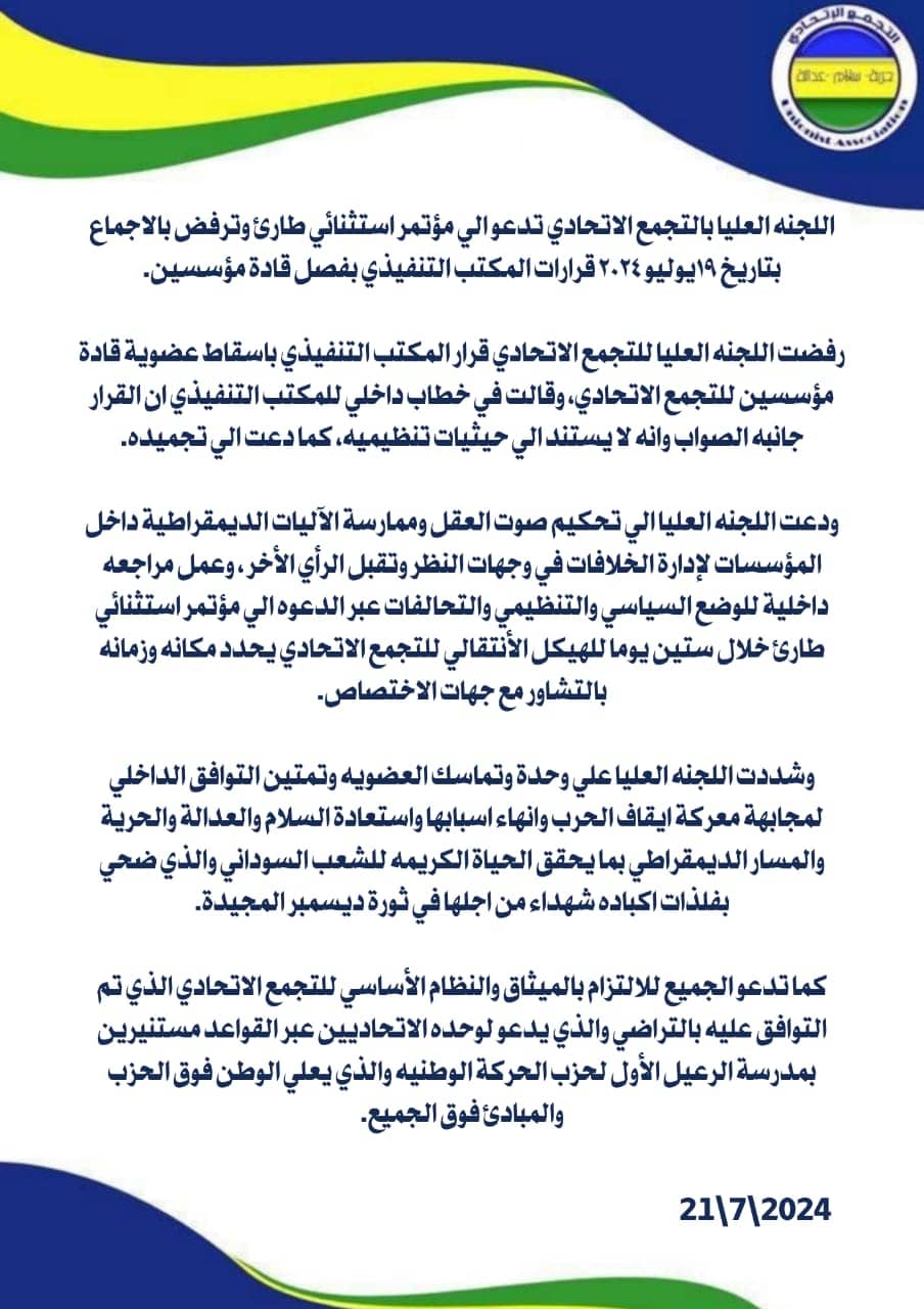 *مؤتمر إستثنائي طارئ للتجمع الاتحادي*